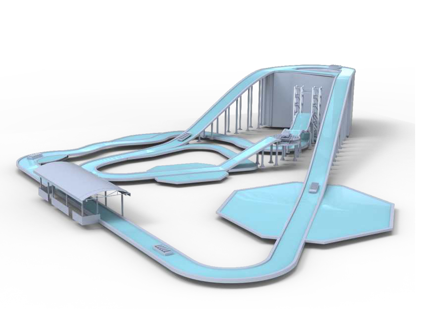 垂直提升激流勇進(jìn)設(shè)備提升高度20米,具備垂直提升、跌落、背沖的特點(diǎn)。采用垂直傳動(dòng)系統(tǒng)提升方式提升,減少設(shè)備占地面積。船體到達(dá)旋轉(zhuǎn)臺(tái)時(shí)進(jìn)行方向調(diào)整,乘客可在游玩過程中分別體驗(yàn)前向俯沖起伏、背向俯沖起伏兩種運(yùn)動(dòng)形式,同時(shí)可融入影視特效主題內(nèi)容,體驗(yàn)元素多樣,驚險(xiǎn)刺激。