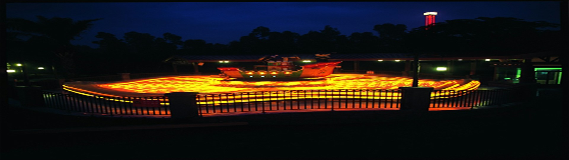 轉(zhuǎn)臂帶動船體旋轉(zhuǎn),船體沿著落差達到0.8米的路軌上下升降,快速旋轉(zhuǎn)當中,游客交替感受到上升超重和下降失重,猶如大海行船,波濤洶涌,驚心動魄。配上美麗動感的燈飾,大型逼真的艦艇船模,氣勢磅薄的場面,是最吸引人的游藝機之一。