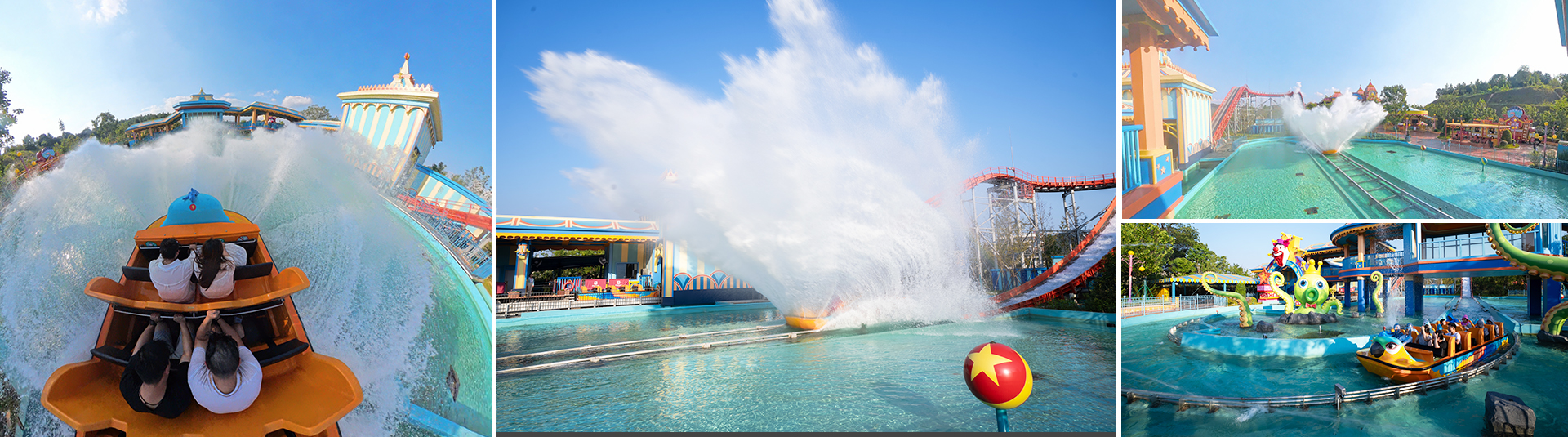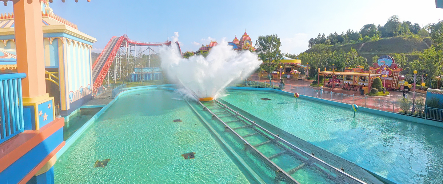 激流勇進設備提升?度16?,軌道蜿蜒??,抵達?坡制動段后經(jīng)過減速到達下沖段,進?快速下沖。乘客在游玩過程中,體會?速沖浪、失重、離?、浪激等多重刺激,其樂?窮。